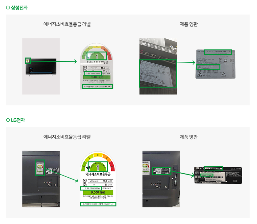 - 가전제품 옆면에 붙어있는 제품번호 '명판 촬영 사진'