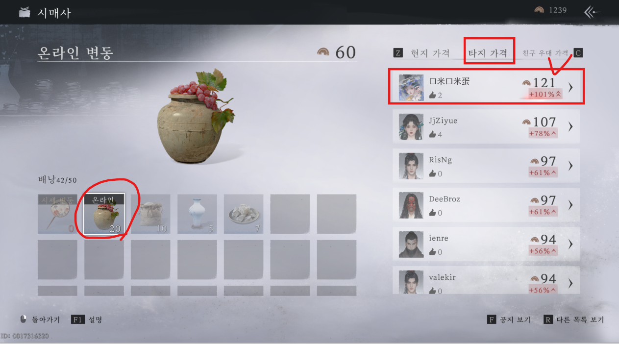 [시세차액으로 물건 팔때, '다른 유저'의 세계에 가서 판매하기]
